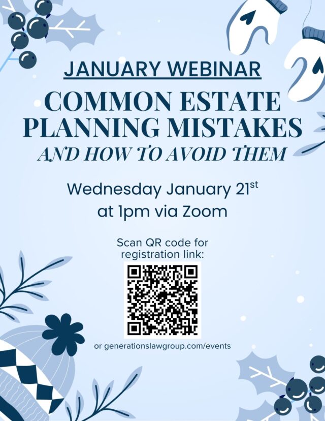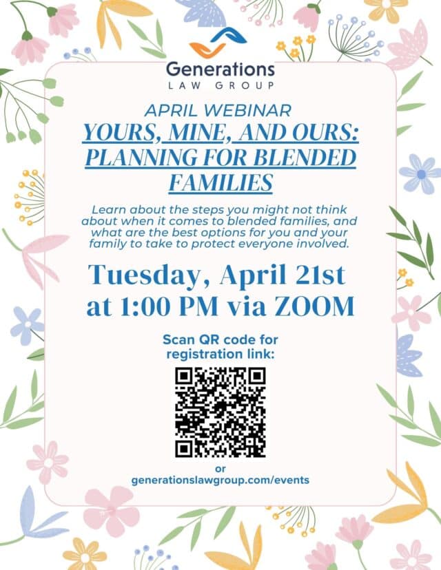 Generations Law Group is proud to provide events via Zoom and in the MetroWest area of Boston to help educate members of our community on topics that affect our family, friends, and neighbors.
